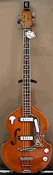 イタリアのブランド“エコー”のなかで,比較的有名な“モデル995”バイオリン・ベース。 “E”マークのエンブレムが取り付けられたヘッド上部は, 立体的な木加工によって前方にせり出している。